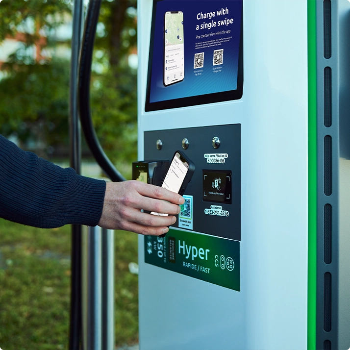 Find stations, start charging, track and end your session from your smartphone with our app for iOS and Android.
