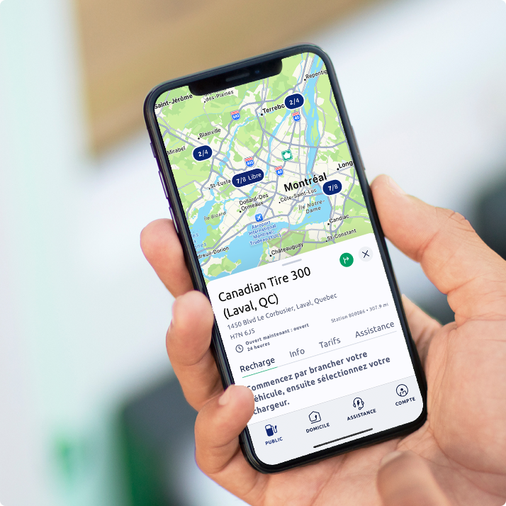 Trouvez une station, rechargez, suivez et terminez votre séance à l’aide de votre téléphone équipé de notre appli pour iOS et Android.