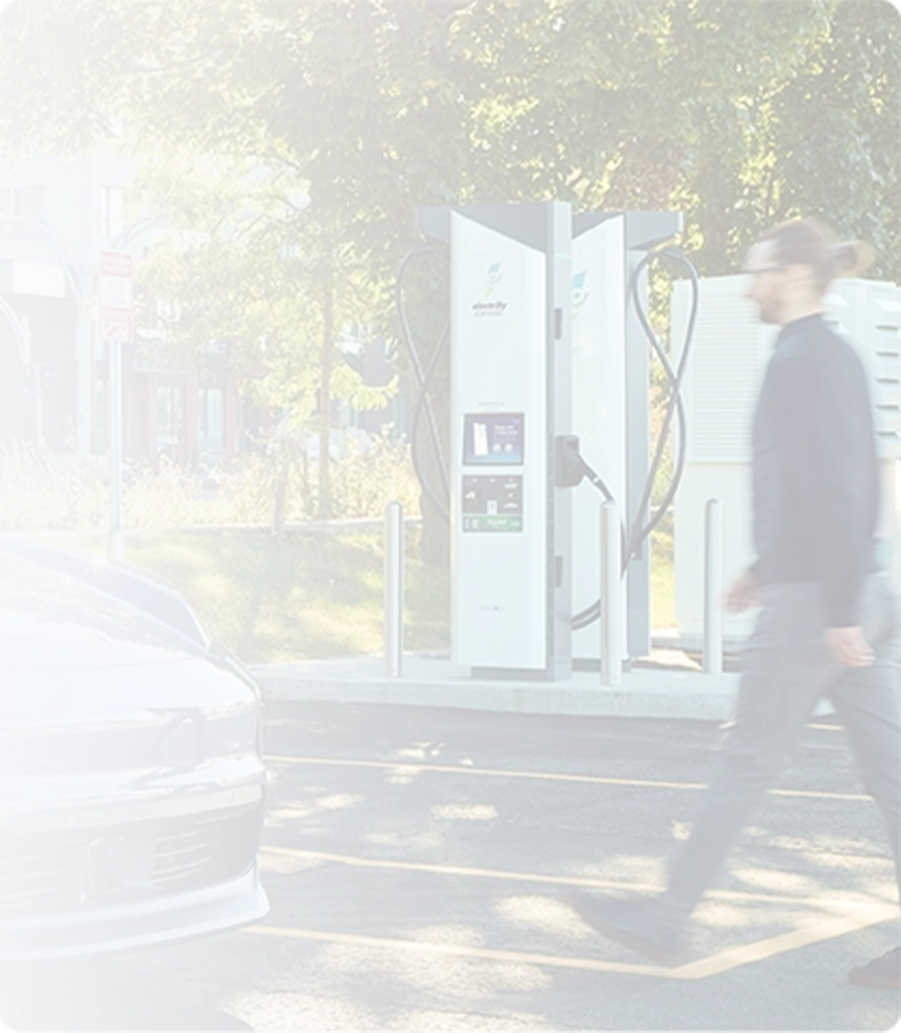 L’expérience de recharge d’Electrify Canada a été créée en fonction de vous. Lorsque vous arriverez à l’une de nos bornes de recharge, vous sélectionnerez d’abord une borne. Une fois que vous aurez branché le connecteur de la borne sur le port de recharge de votre véhicule, la borne tirera l’énergie de la baie d’alimentation.